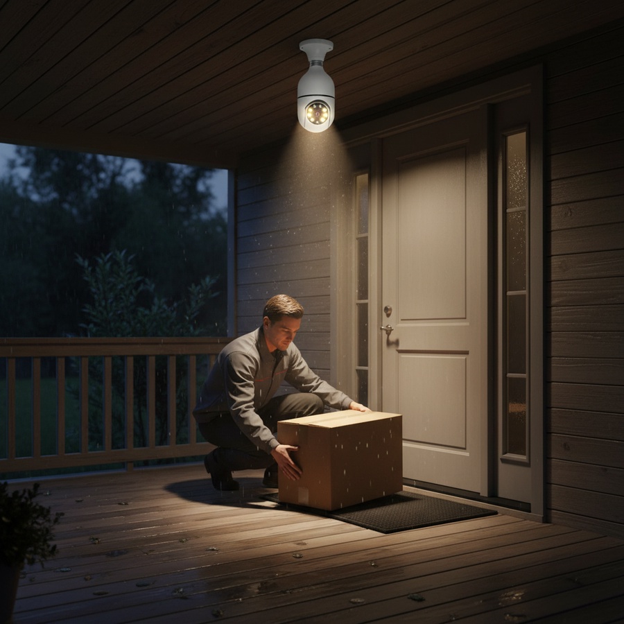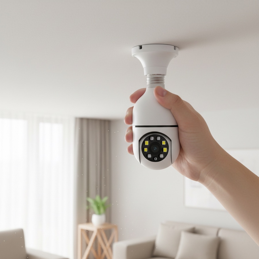 ركّب الكاميرا في قاعدة لمبة عادية (E27).