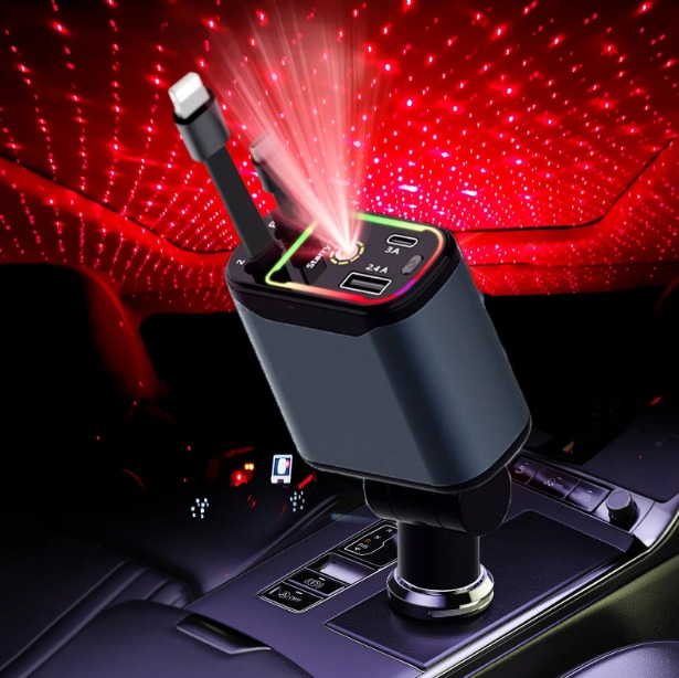 شاحن سيارة بإضاءة النجوم RGB مطور تصميم شاحن ستار لايت بألوان أنيقة ونابضة بالحياة، لا يمكنه فقط شحن أجهزتك بسرعة، ولكن أيضًا عرض ضوء النجوم الساحر في سيارتك