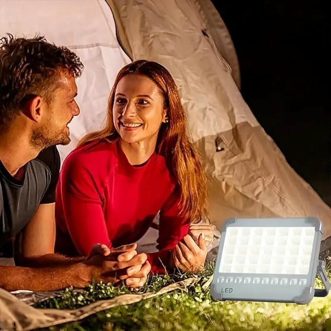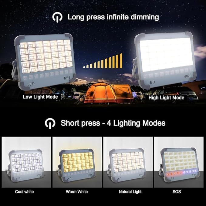 مصباح عمل LED محمول من برايم ليف بقوة 100 واط - كشاف قابل لإعادة الشحن بقوة 10000 لومن مع بطارية 16500 مللي أمبير وبطارية تعمل بالطاقة الشمسية، مع إمكانية التحكم في شدة الإضاءة بسلاسة للاستخدام الخارجي والداخلي والتخييم وحالات الطوارئ