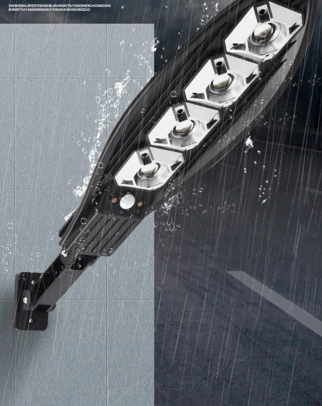مصباح خارجي LED يعمل بالطاقة الشمسية بقوة 80 واط وسطوع 3000 لومن, توفر مساحة إضاءة 140 مترًا مربعًا بفضل زاوية 120 - 160 درجة بعد الشحن 8 - 10 ساعات.