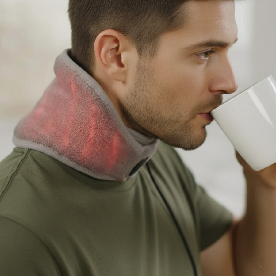 يتميز بحشوة من الصلصال توزع الضغط والحرارة بالتساوي وتعمل على تعزيز تأثير التدليك مع الحفاظ على ملاءمة مريحة لرقبتك
