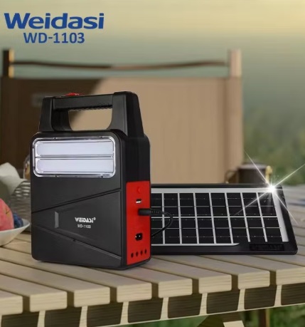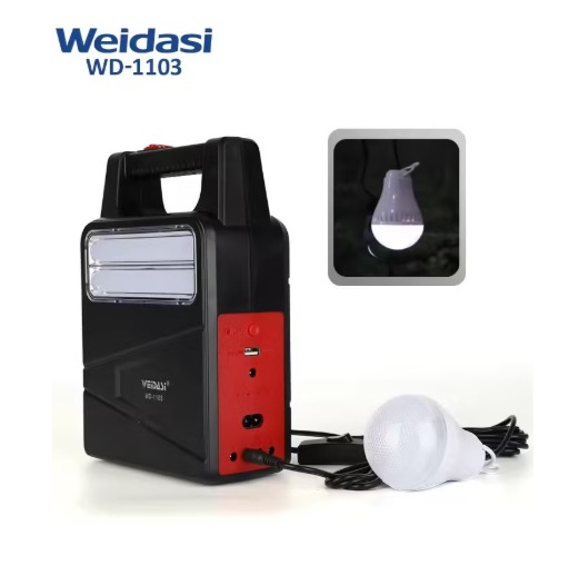 3- لمبة خارجية مزودة بـ 4 مقابس إخراج تيار مستمر (3 لمبات لشحن المنتج).