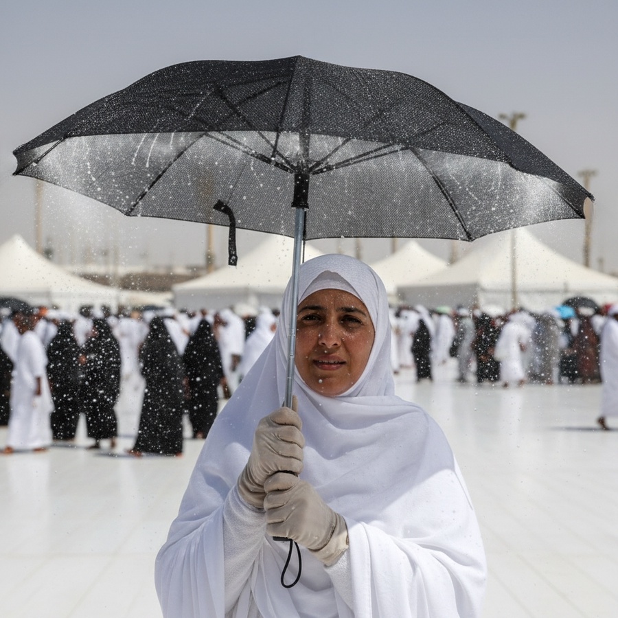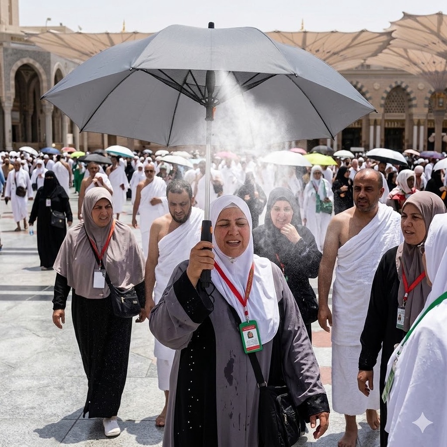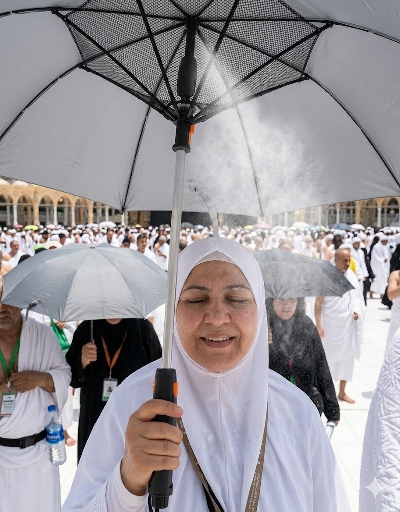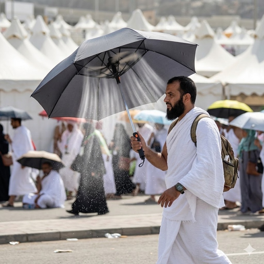 داخلين على موسم الحج، وكلنا نعرف كيف شمس مكة وتعب المشي في عز الظهر ممكن يهد الحيل. العرق، الكتمة، والحرارة اللي تخليك تدور أي نسمة هواء أو قطرة مويه تبرد عليك عشان تقدر تكمل يومك وعبادتك براحة. ونفس المعاناة تتكرر في طلعات التخييم وكشتات الصيف، ودك تستانس بس الحر يخرب عليك الجو!